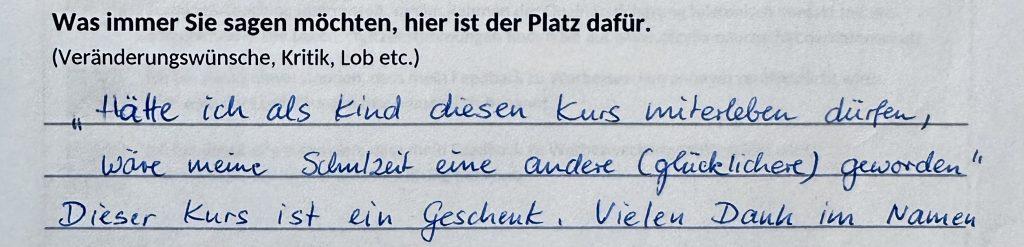 Wertschätzung, Rückmeldung, Reflexion – Feedback ist für mich all das. Es hilft mir, meine Arbeit weiterzuentwickeln, und zeigt mir gleichzeitig, was bereits wirkt. Auch konstruktive Kritik ist willkommen – denn sie gibt mir die Chance, weiter zu wachsen. Manche Rückmeldungen gingen mir direkt ins Herz – ein paar davon möchte ich mit euch teilen.
